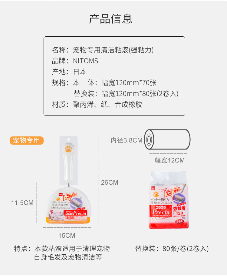 【NITOMS】強粘力寵物用粘滾/替換裝2卷裝